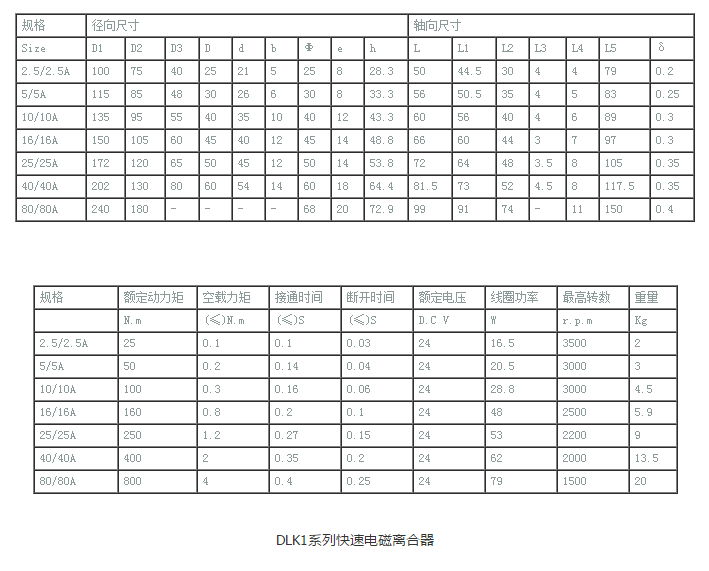 DLK1系列快速电磁离合器